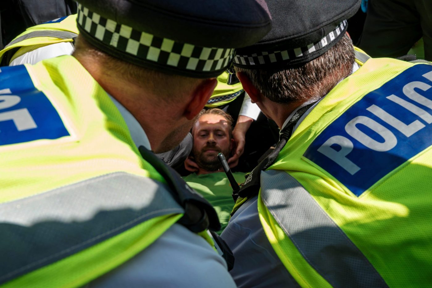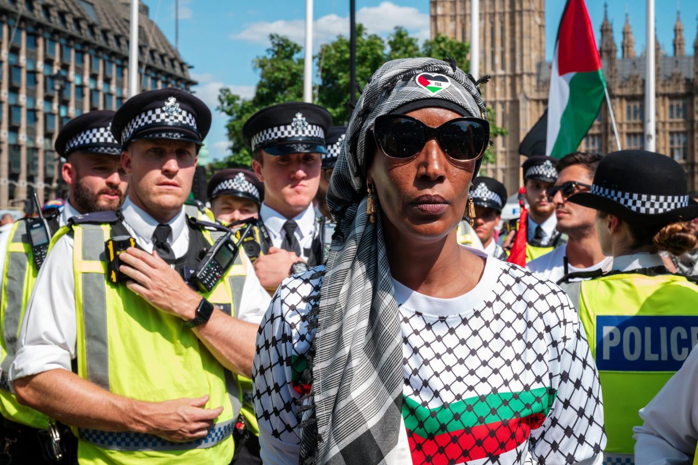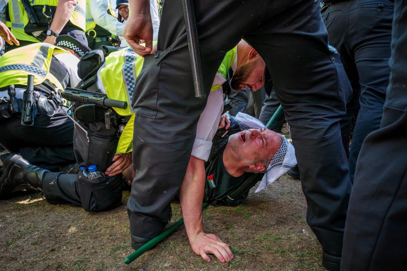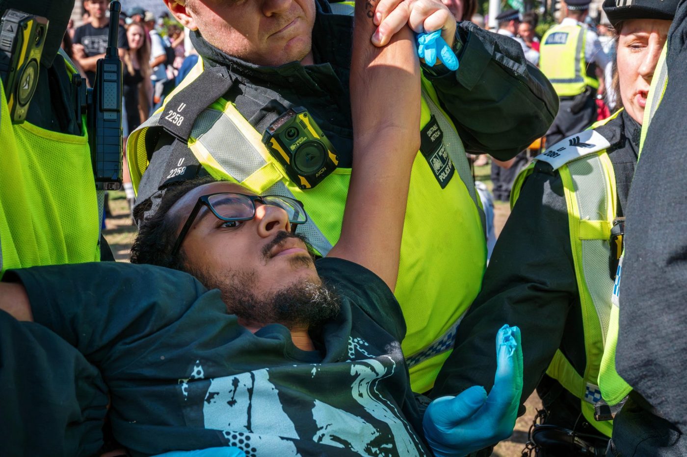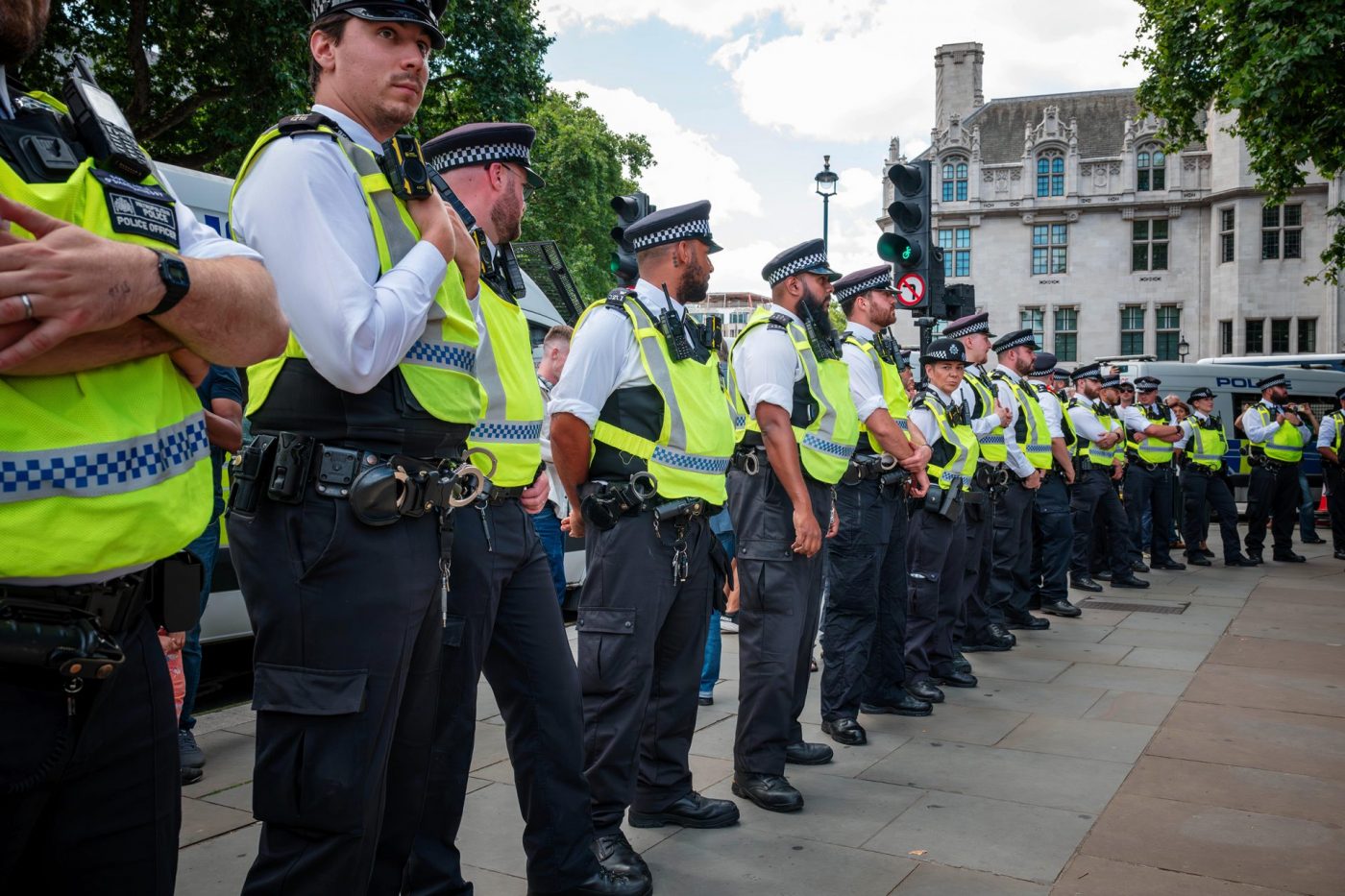 London, 9th August 2025. Defend our Juries called for a mass civil disobedience in Parliament Square against the government’s proscription of Palestine Action. More than 1,000 people occupied the square and took part in a silent vigil holding placards. The Metropolitan Police warned that anyone taking part would be arrested under anti-terrorism legislation. There were 521 arrests, the largest single mass arrest by the Metropolitan Police.