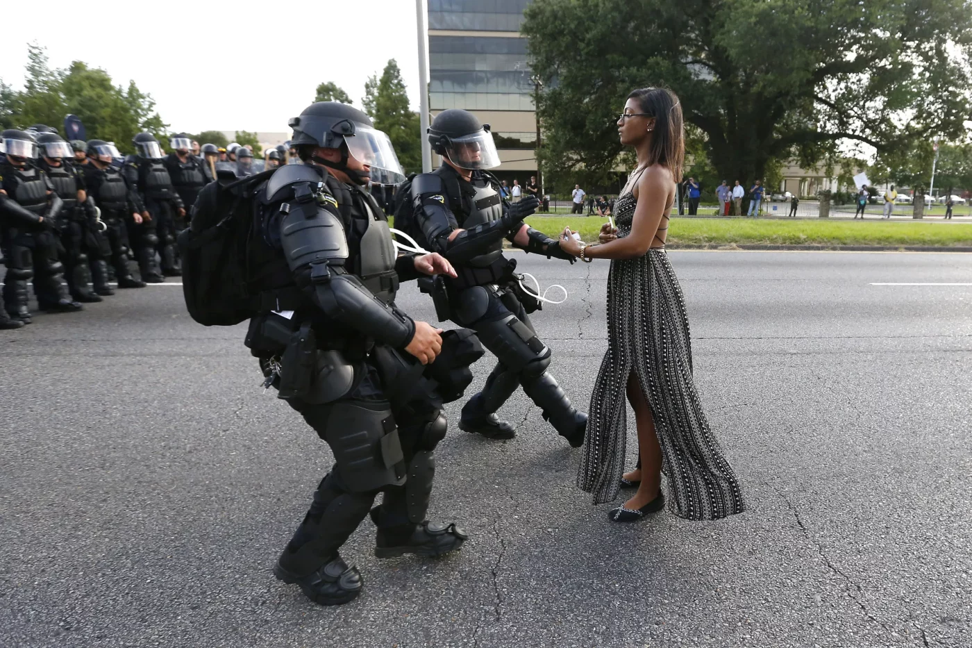 © Jonathan Bachman—Reuters. Ieshia Evans, protesting against the shooting and death of Alton Sterling, is detained by law enforcement near the headquarters of the Baton Rouge Police Department, July 9, 2016.